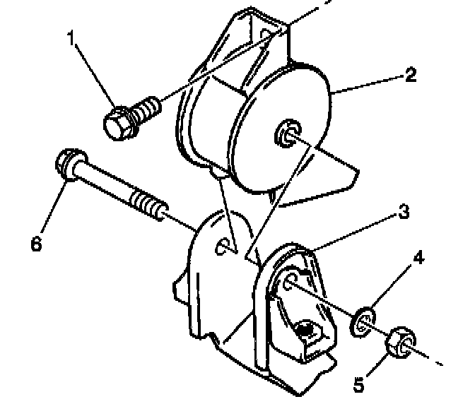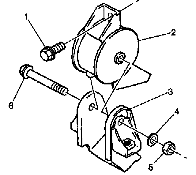 26. Remove the rear transaxle mount through-bolt (6) and the nut (5) from the rear transaxle mount (2).