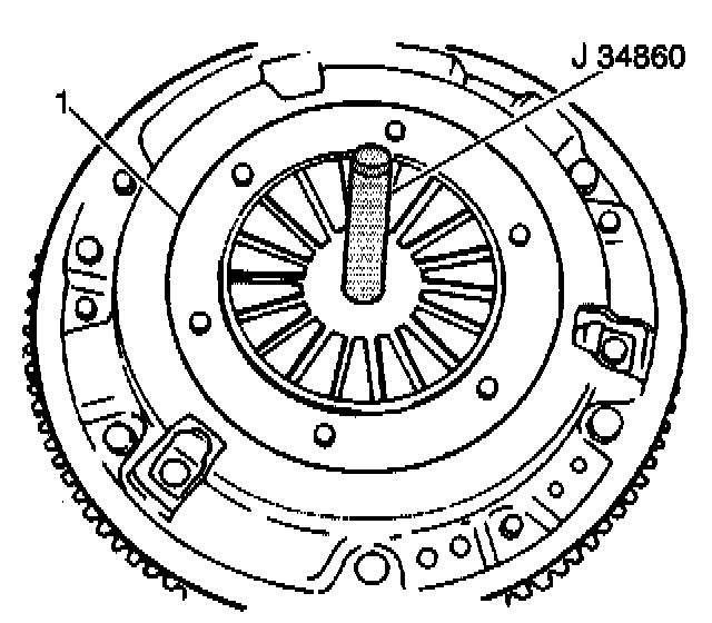 If the J34860 does not fit through the clutch disc and into the pilot bearing smoothly, the clutch disc may be misaligned. For clutch disassembly procedures and for inspection procedures, refer to Clutch Assembly Replacement. Align the clutch disc, if necessary.
