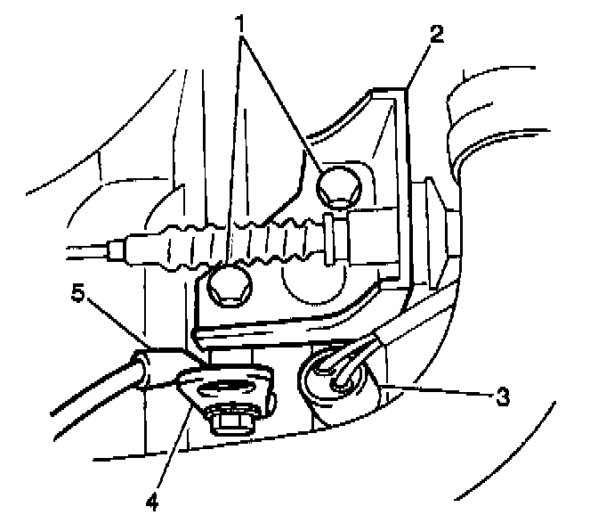 5. Install the left transaxle mounting bracket (2).