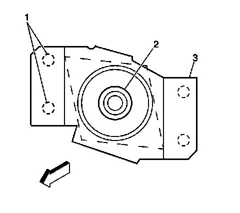 6. Use a chisel in order to break the spot welds (1) on one side of the frame crossmember nut retainer (3).