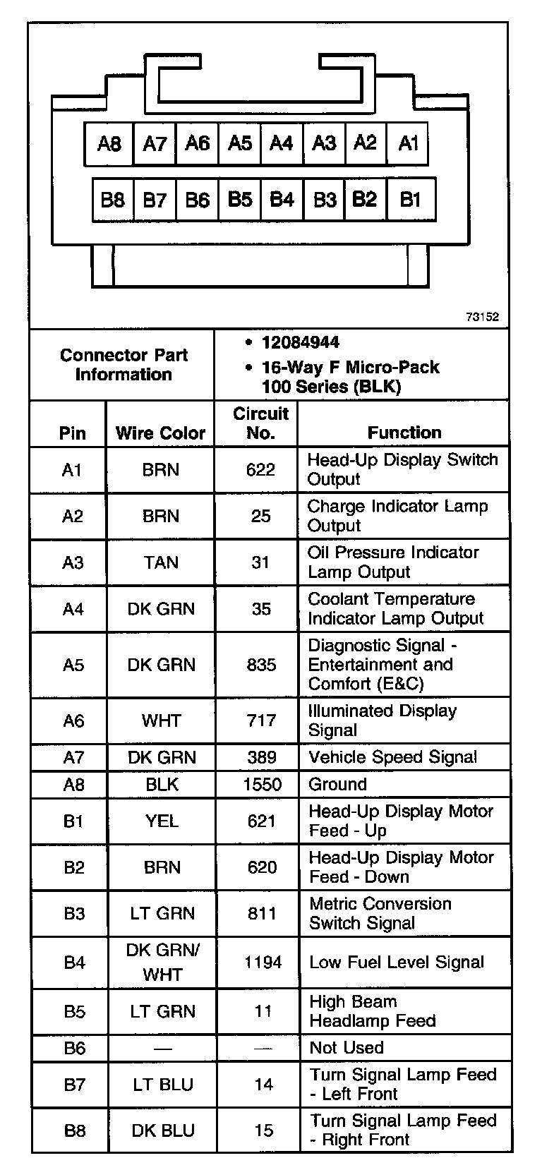 Instrument Cluster Head-Up Display (HUD): W/RPO UV6: