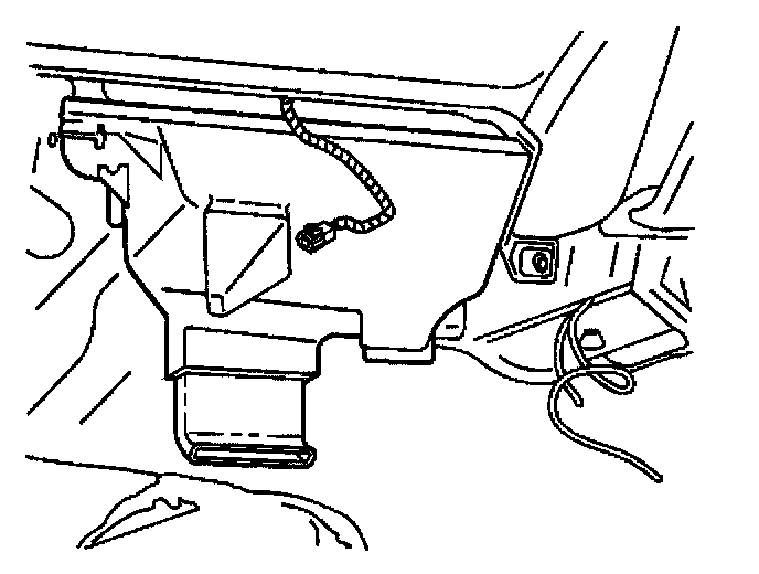 IMPORTANT: Position the heater core outlet cover downward and rearward in order to disconnect the cover from the rear area floor duct assembly.