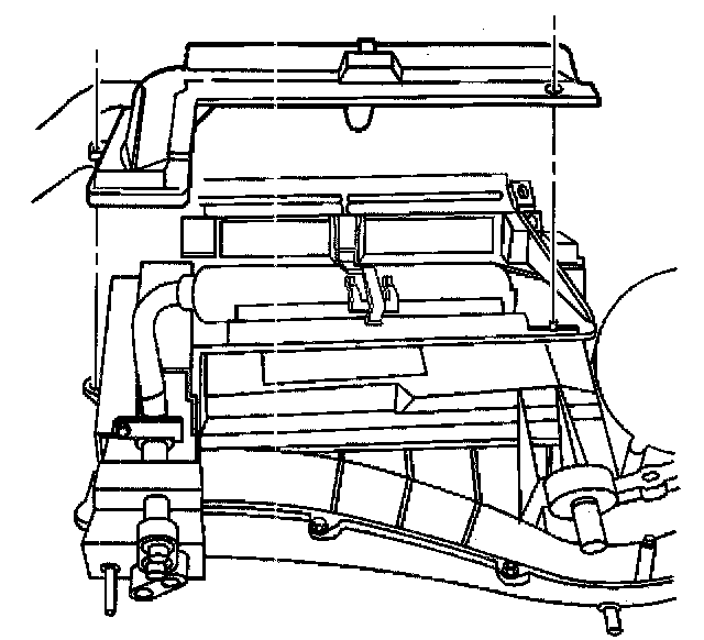 1. Install the heater core side seals (1) to the HVAC lower case.