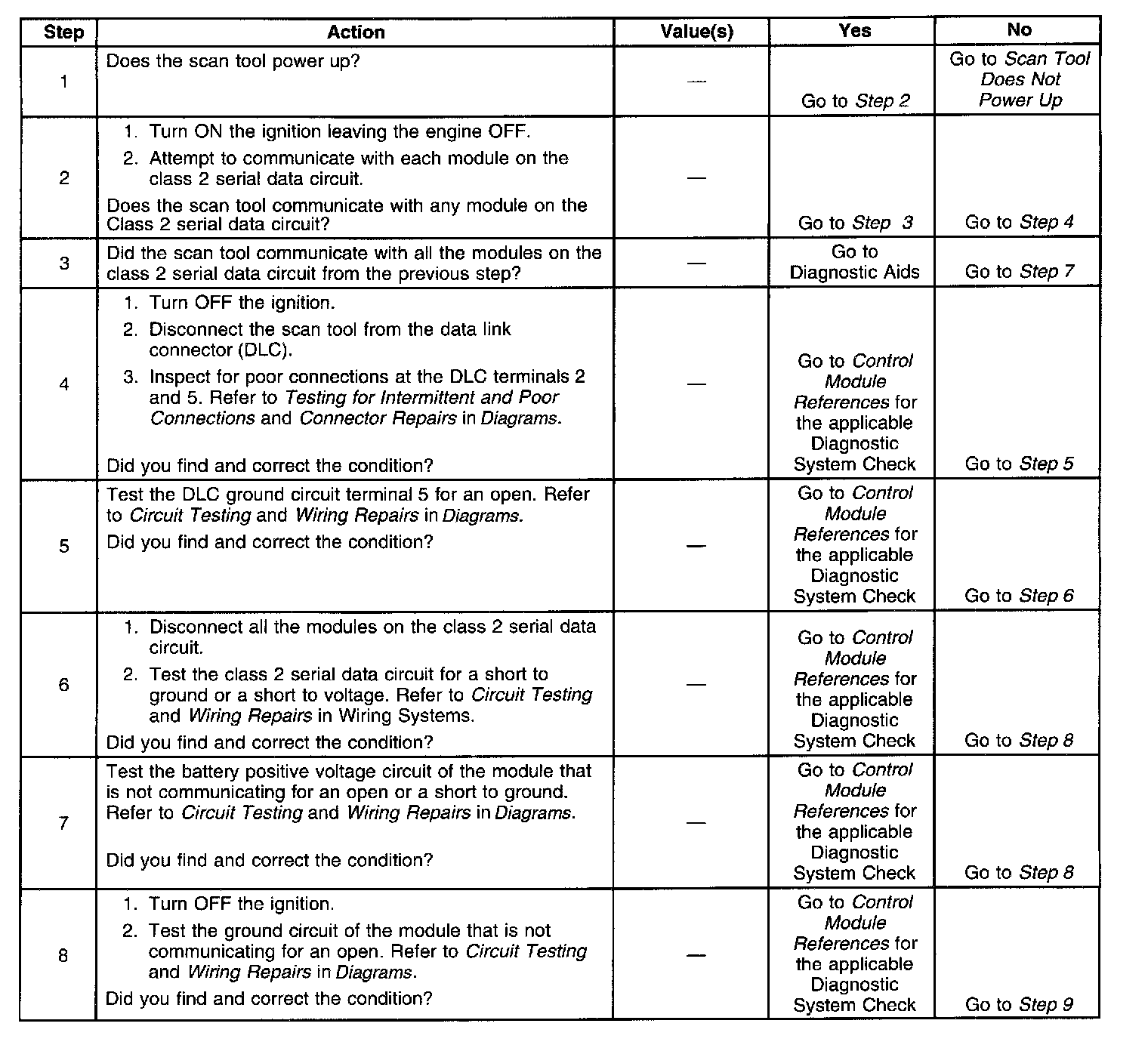 The class 2 serial data circuit may have an intermittent open, short to voltage or short to ground. Refer to Testing for Intermittent and Poor Connections in Diagrams.