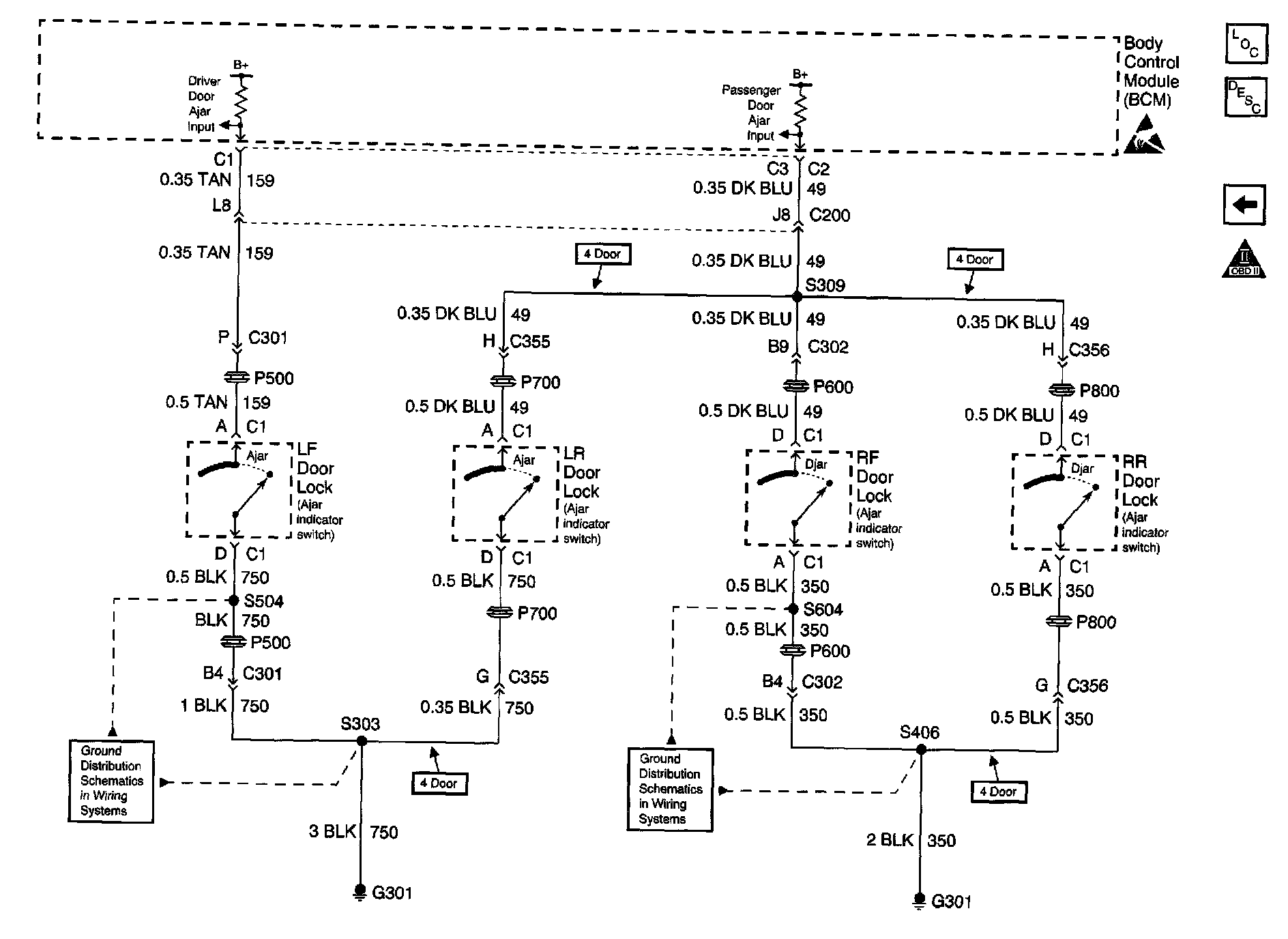 Body Control Module Schematics: Door Ajar Indicator Switches: