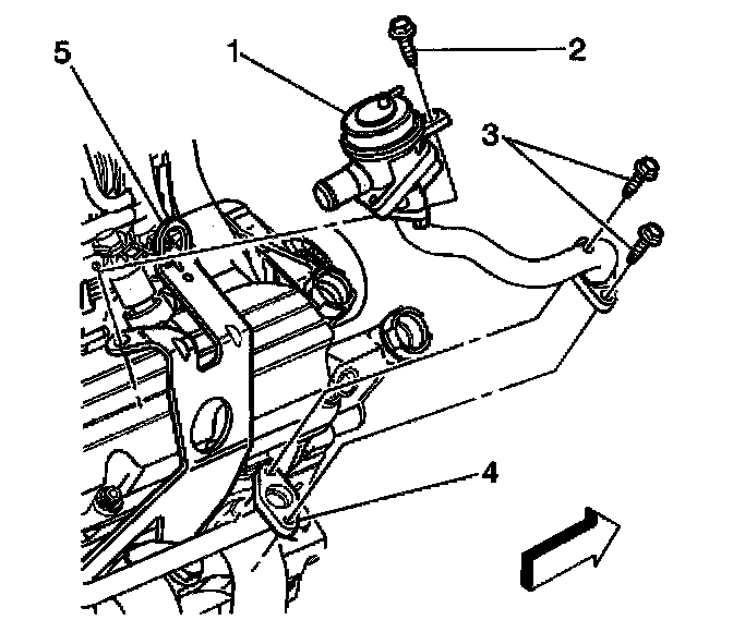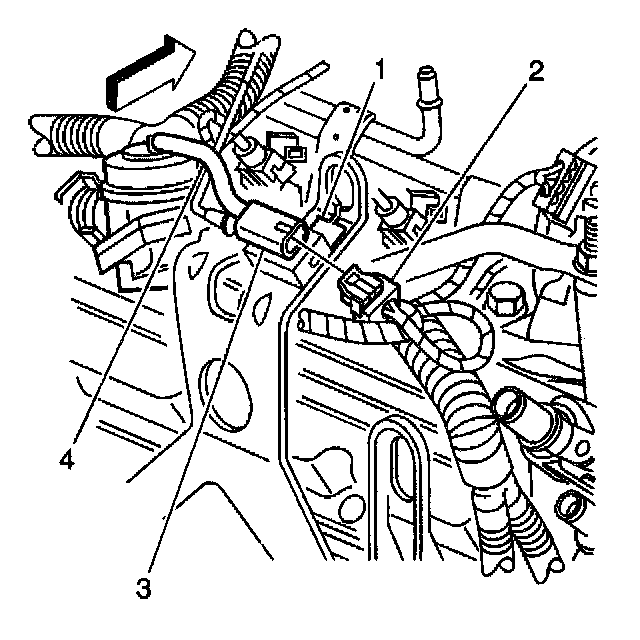 4. Remove the mounting bolt that secures the combination valve to the map sensor bracket (2).