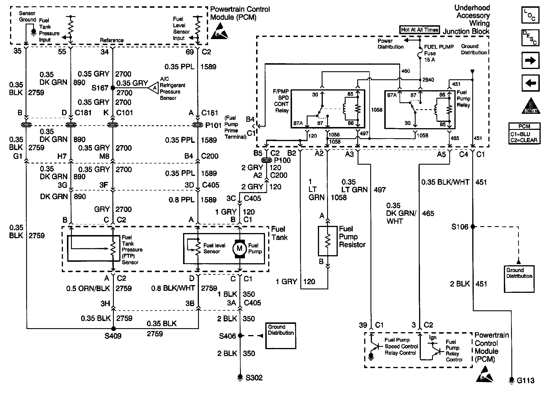 Engine Controls Schematics: Fuel Tank and Fuel Pump Resistor: