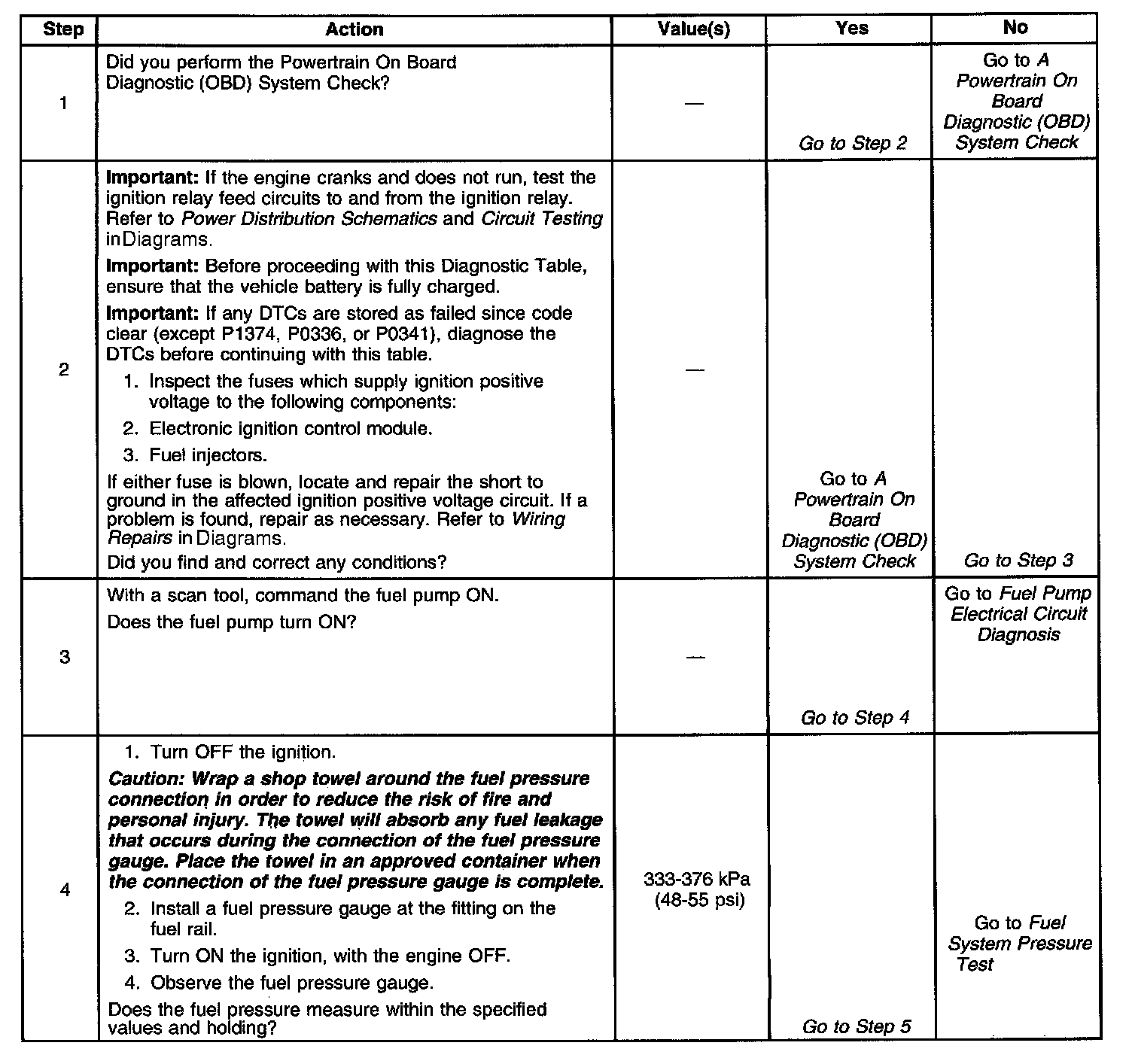 Number(s) below refer to the step number(s) on the Diagnostic Table: