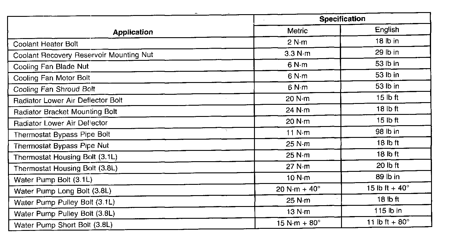 Fastener Tightening Specifications