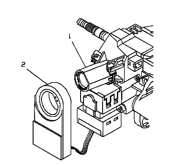 8. Remove 2 tapping screws (2) from the ignition and key alarm switch assembly (1).