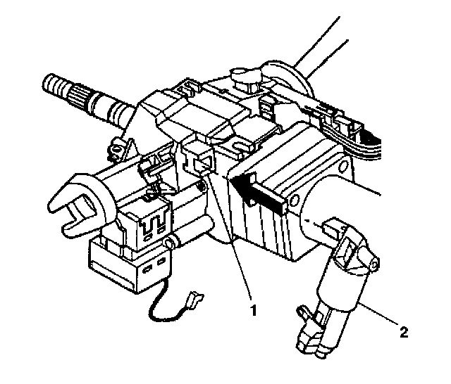 11. Remove the lock module assembly (2) from the steering column tilt head assembly (5).