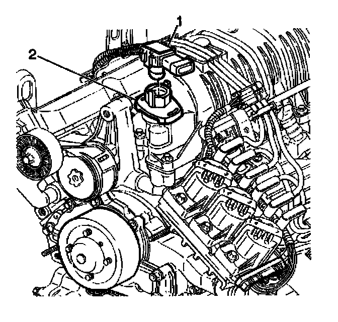 2. Position and install the MAP sensor (1) to the PCV valve cover (2). Ensure that the locking tabs engage to hold the MAP sensor to the PCV valve cover.