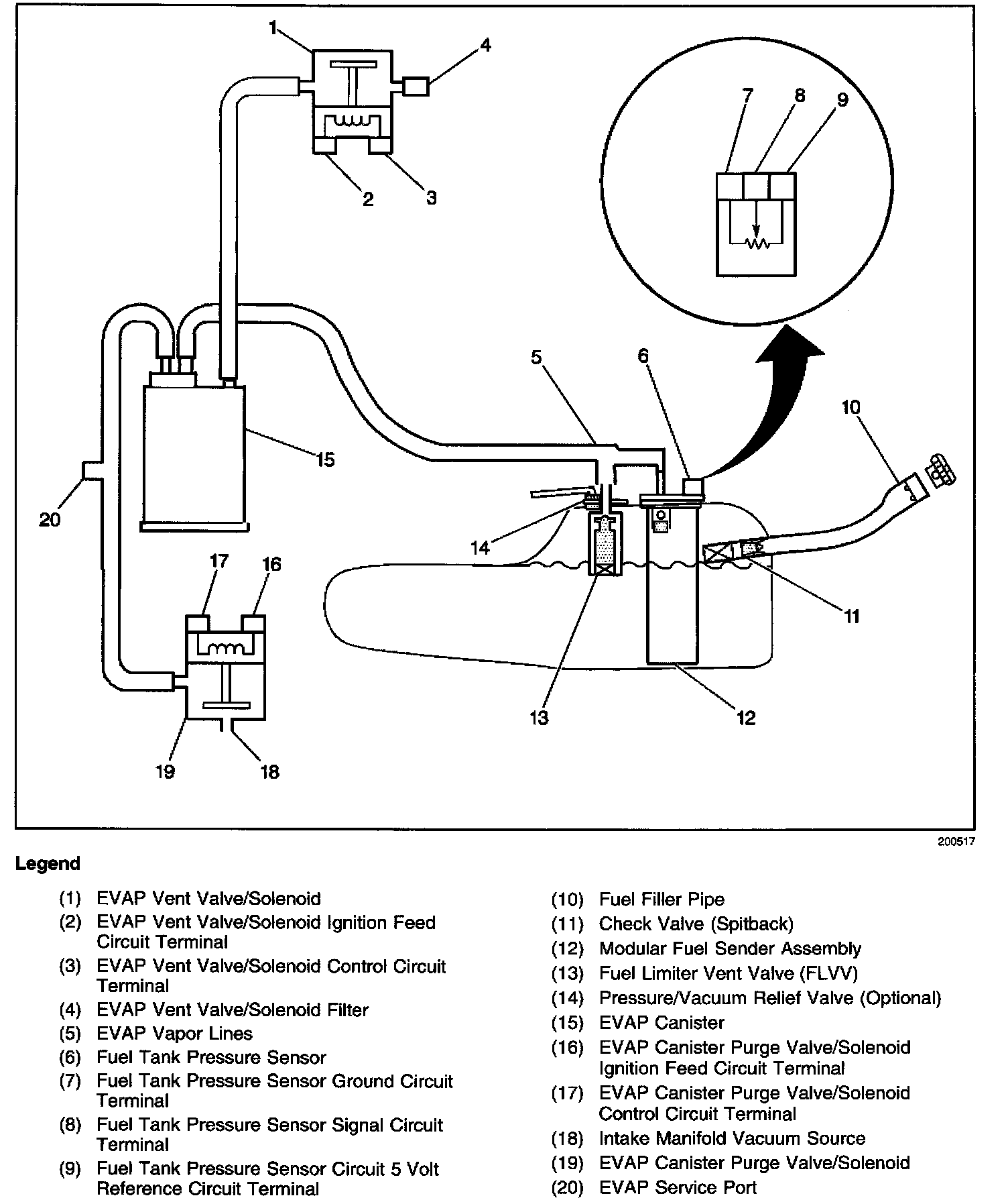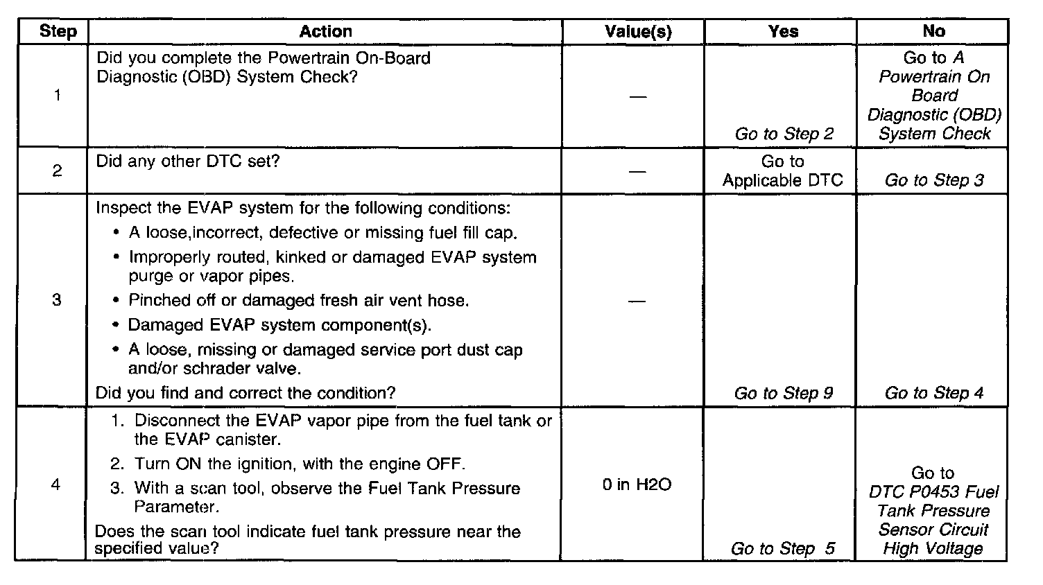 ^ Kinked, pinched or plugged vacuum source, EVAP purge, or fuel tank vapor line. Verify that the lines are not restricted.