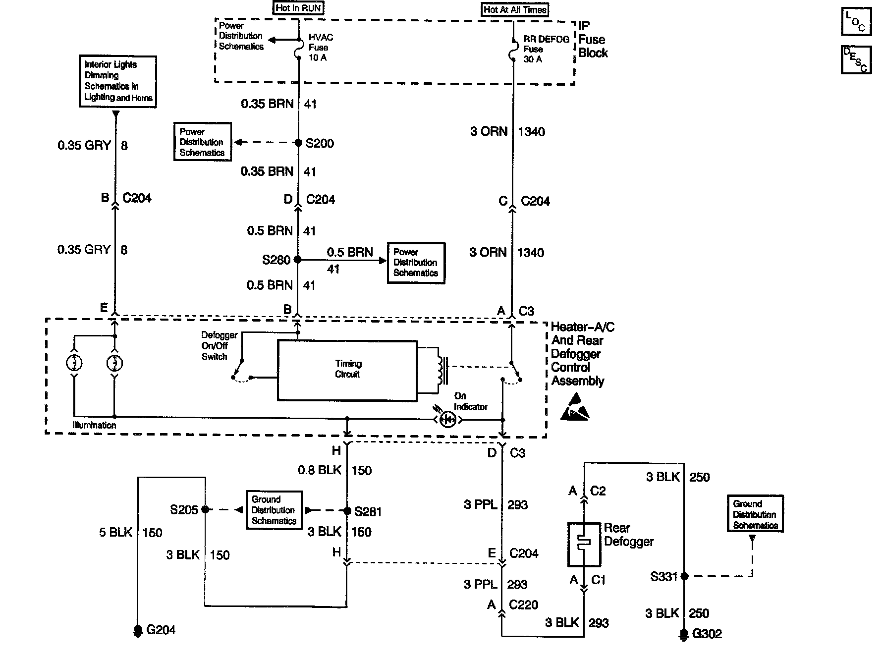 HVAC Compressor Control Schematics: Heater-A/C And Rear Defogger Control Assembly: