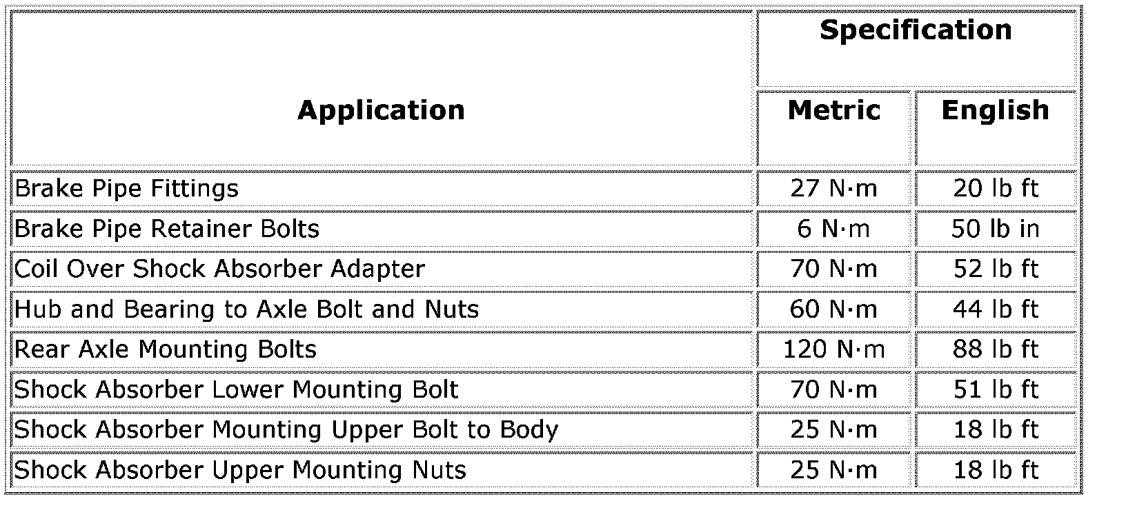 Fastener Tightening Specifications