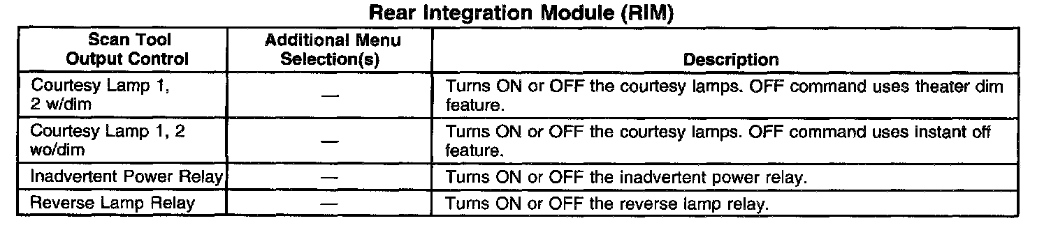 Scan Tool Output Controls - Rear Integration Module (RIM)