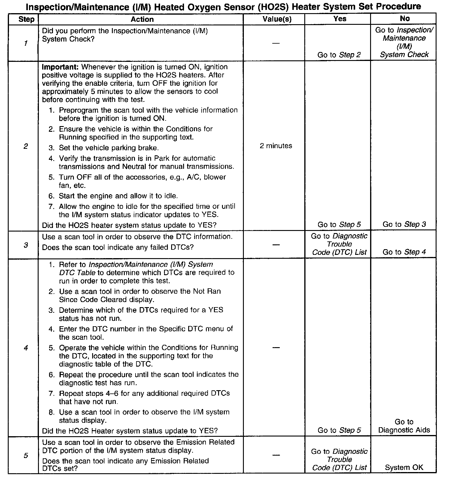 I/M HO2S Heater System Set Procedure