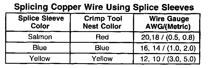 Use crimp and seal splice sleeves to form a one-to-one splice on all types of insulation except tefzel and coaxial to form a one-to-one splice. Use tefzel and coaxial where there is special requirements such as moisture sealing. Follow the instructions below in order to splice copper wire using crimp and seal splice sleeves.