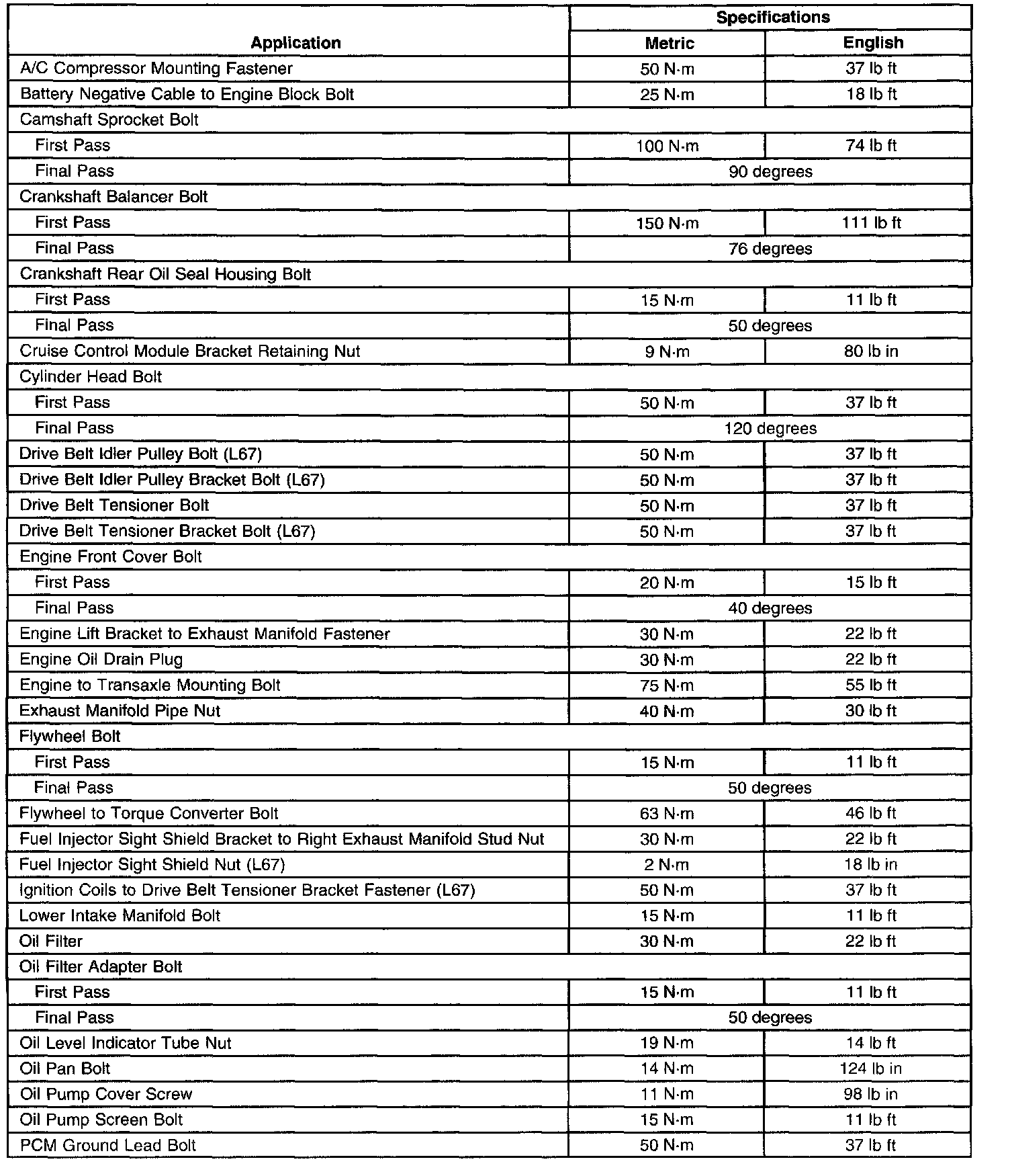 Fastener Tightening Specifications