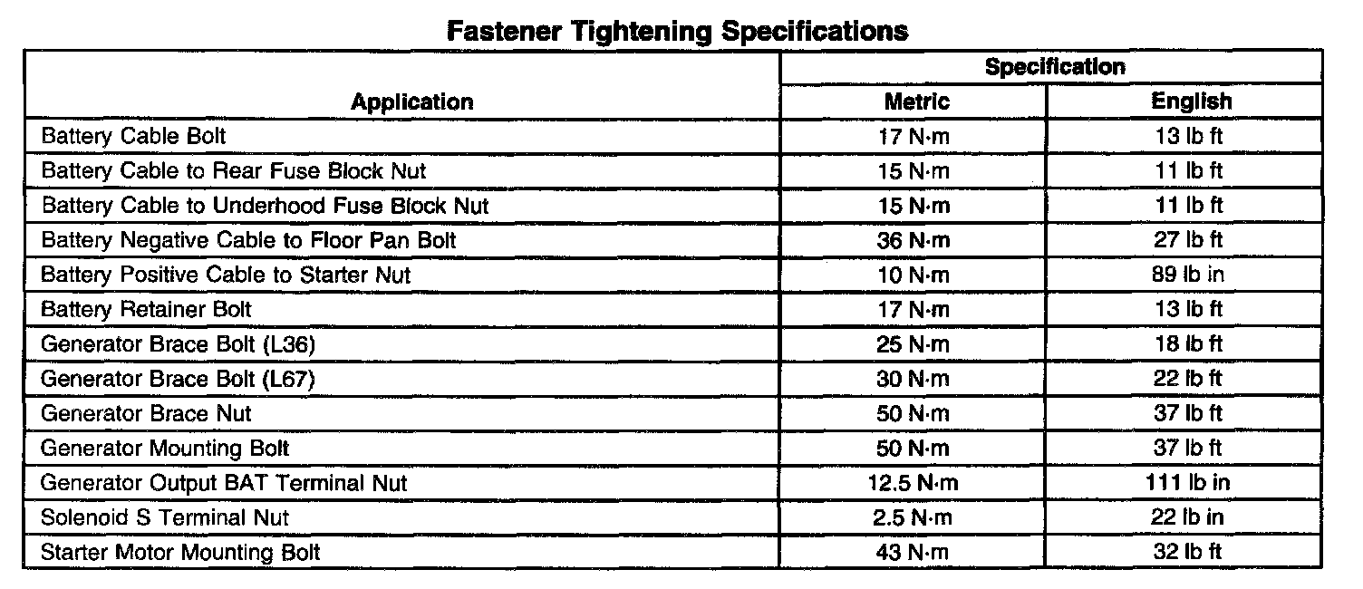 Fastener Tightening Specifications: