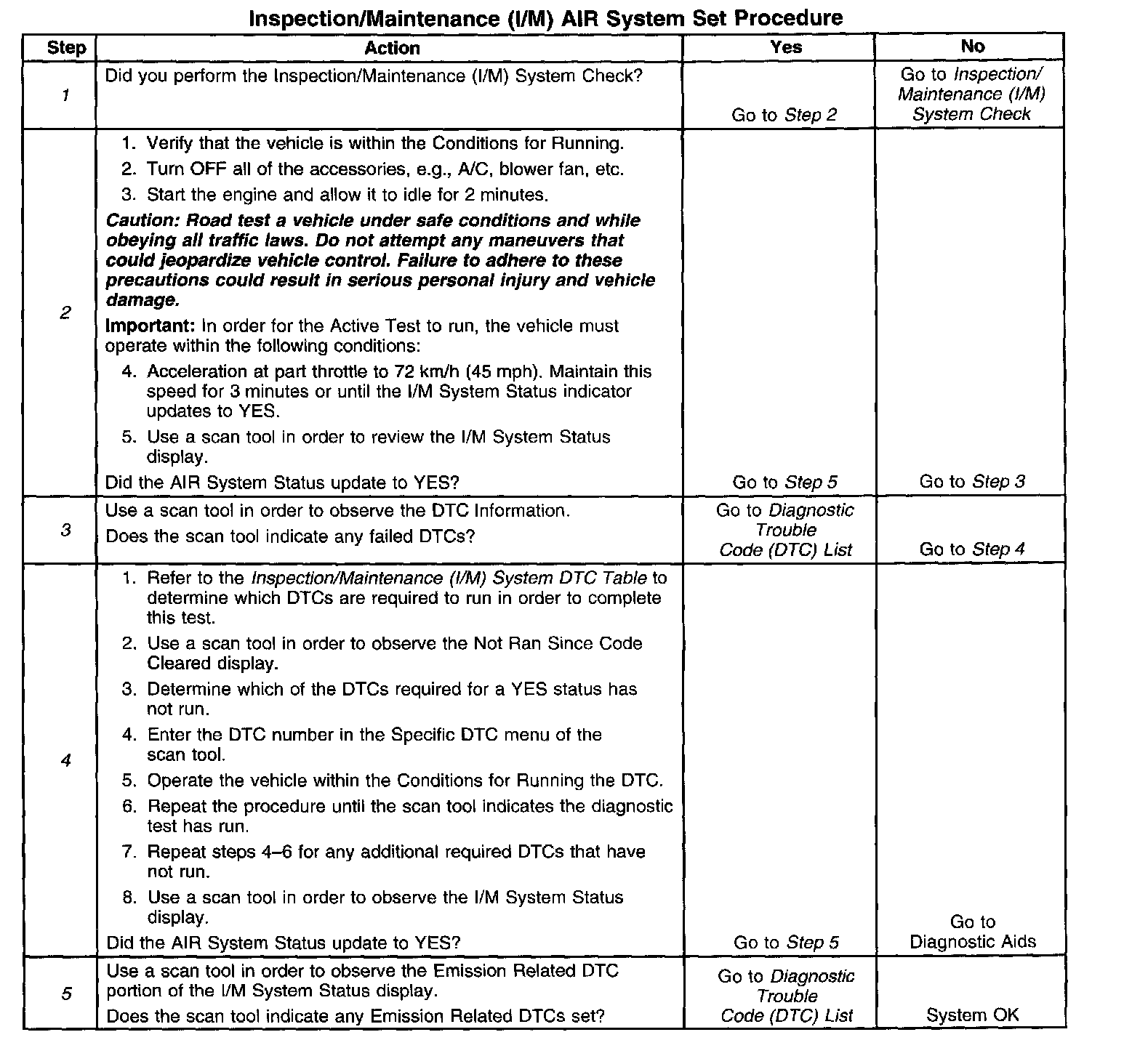 1. Perform the I/M System Check before performing this test. Failure to do so may result in difficulty updating the status to YES. Inspection/Maintenance (I/M) System Check