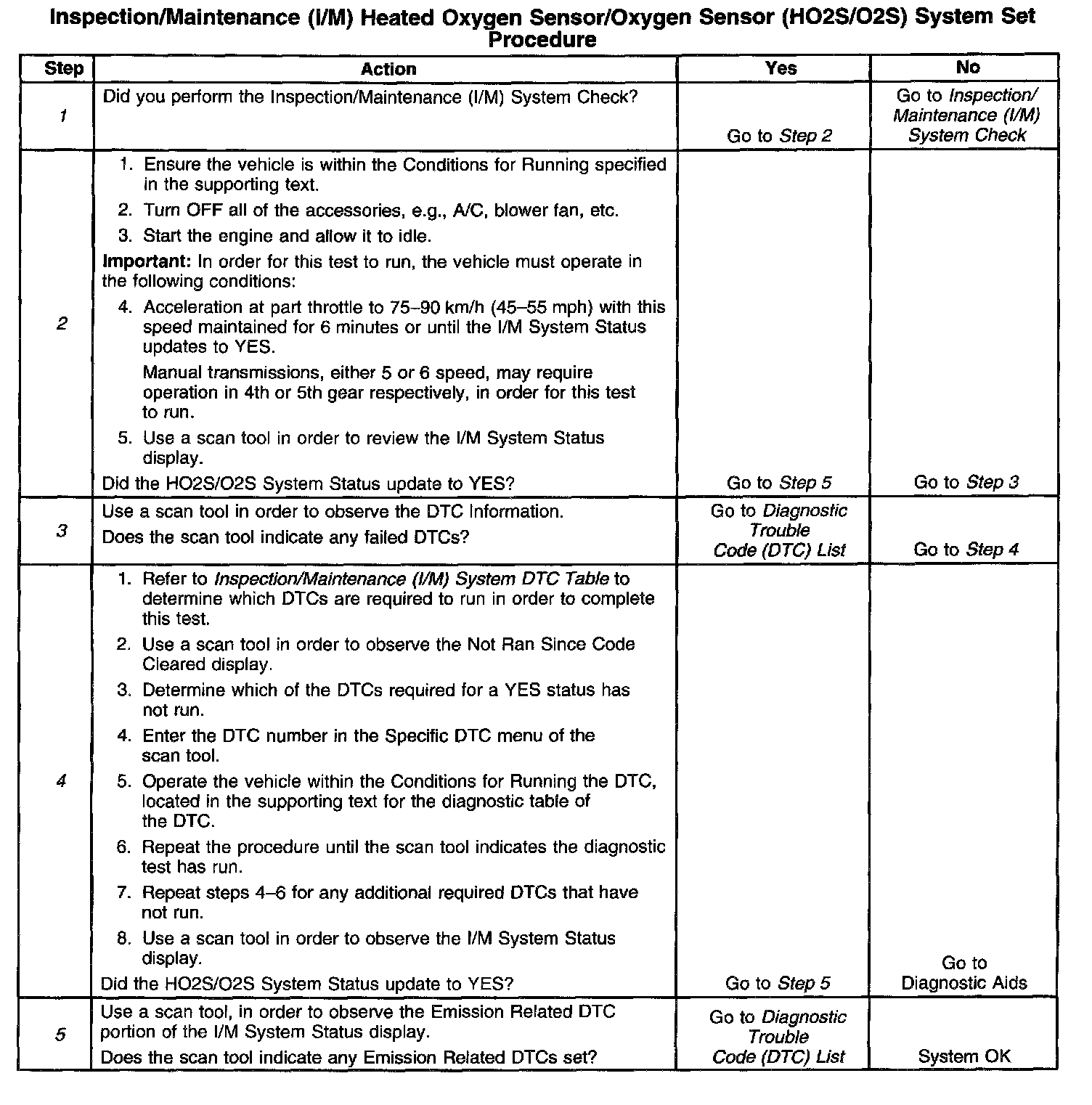 I/M HO2S/O2S System Set Procedure