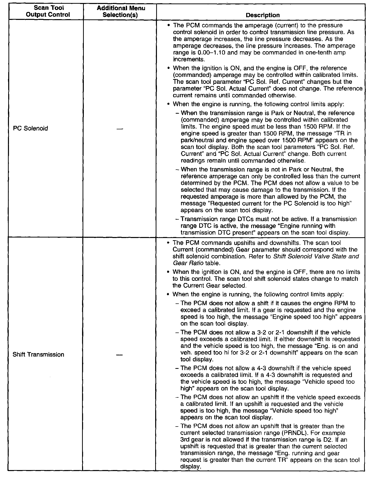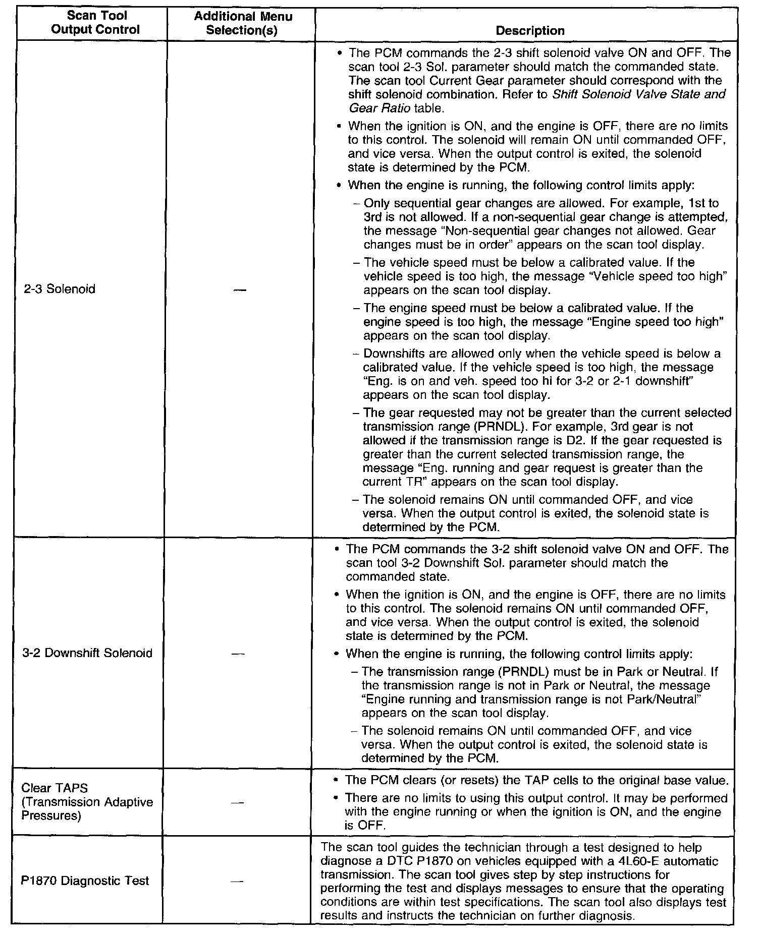 Scan Tool Output Controls