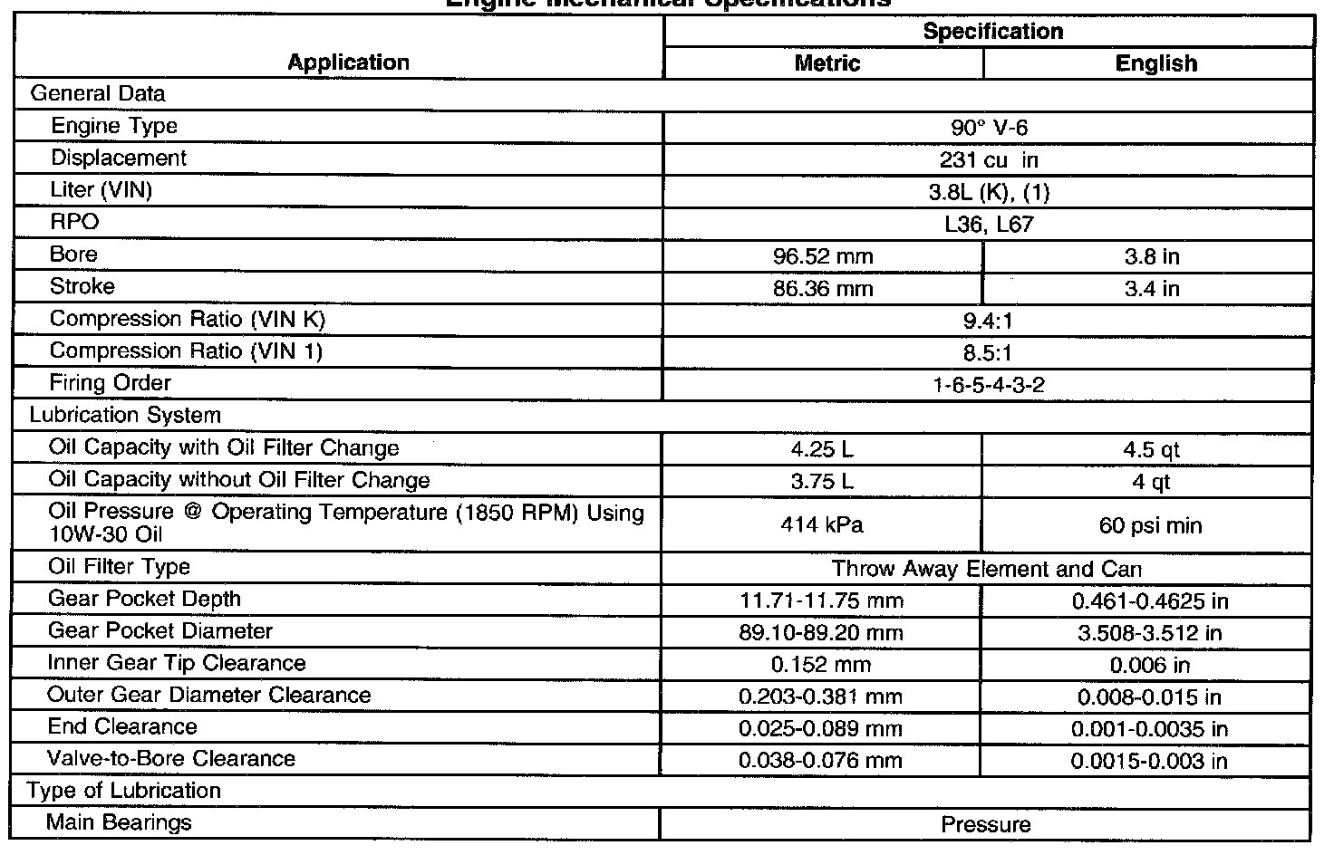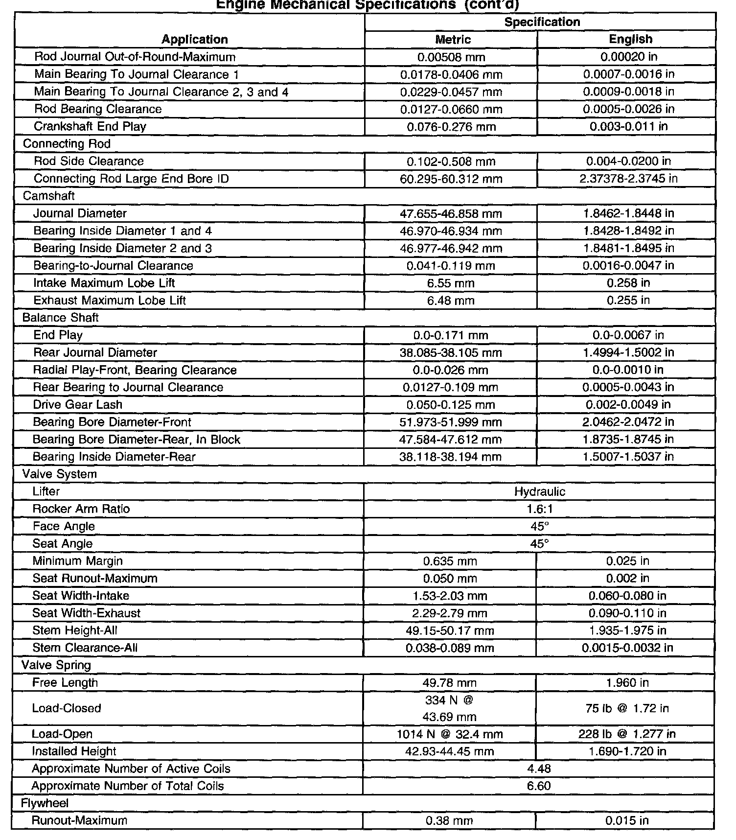 Engine Mechanical Specifications