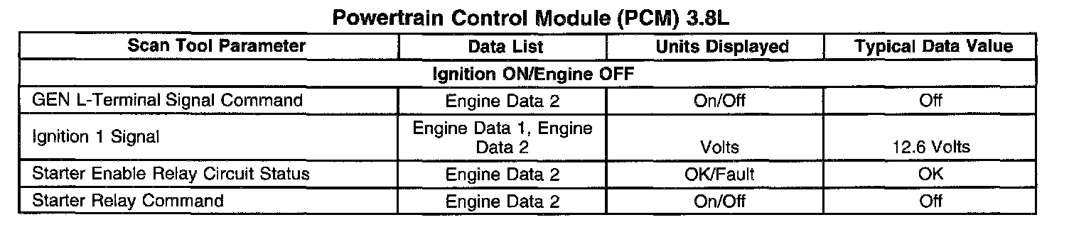 Scan Tool Data List - Powertrain Control Module (PCM)