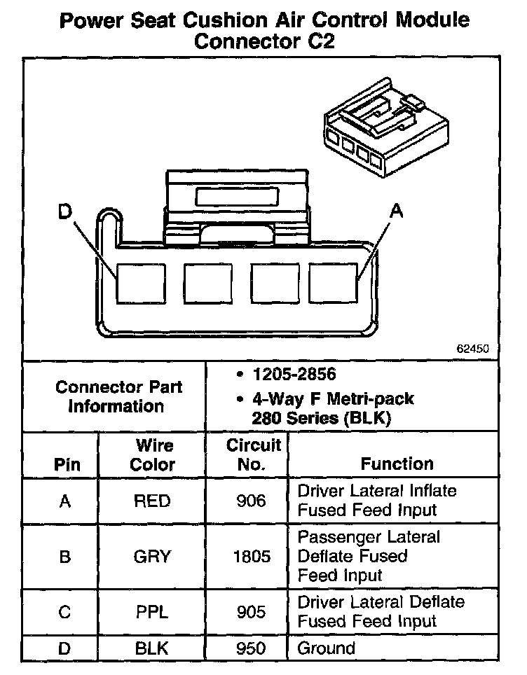 Power Seat Cushion Air Control Module Connector C2