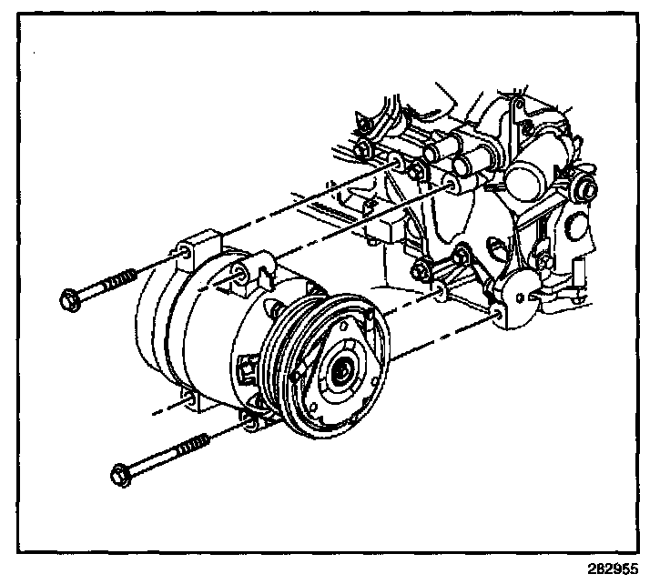 8. Remove the A/C compressor bolts.