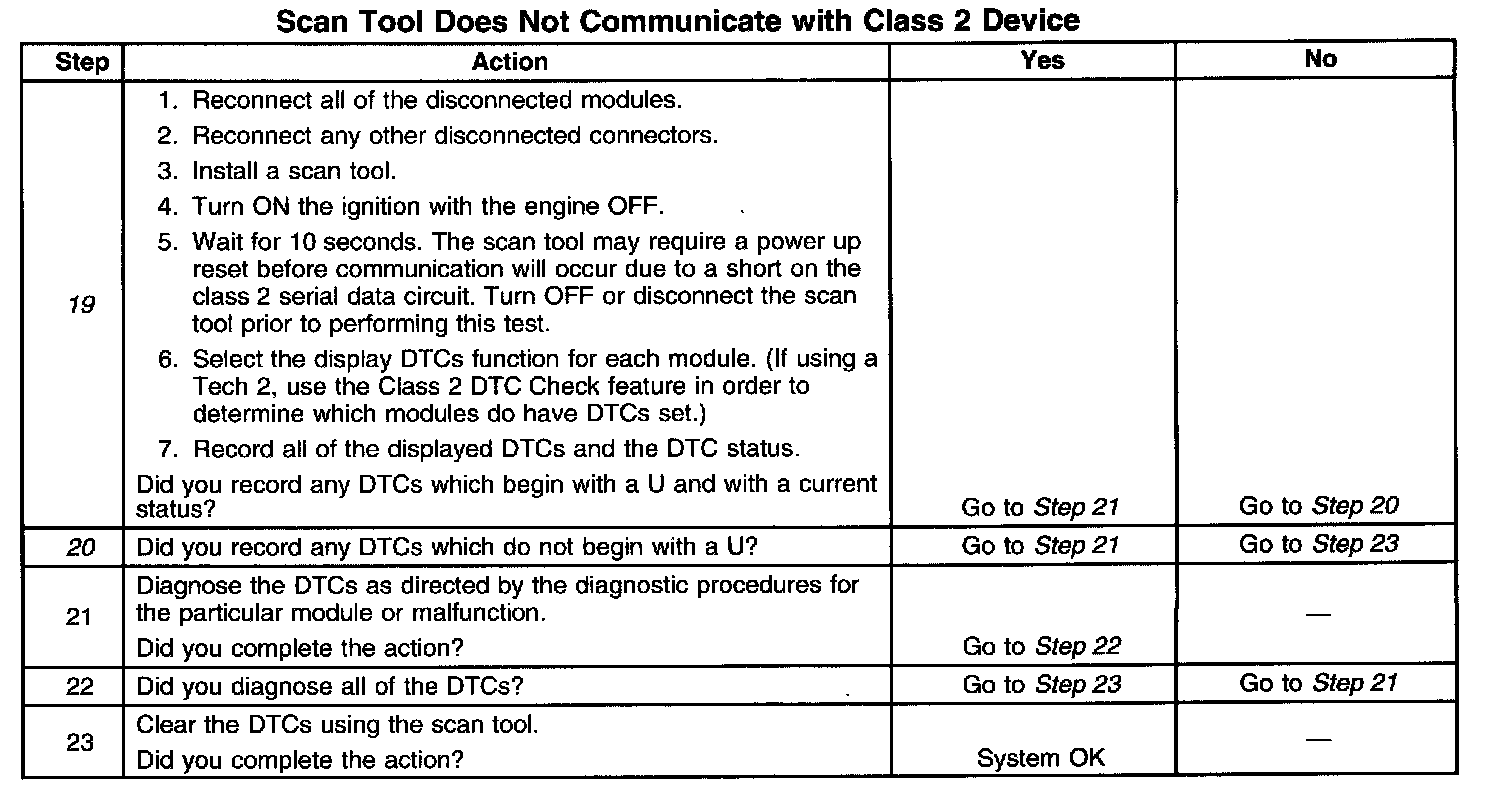9. The class 2 serial data circuit is shorted to voltage or ground. The condition may be due to the wiring or due to a malfunction in one of the modules. When testing the wiring for a short, make sure there is not a module connected to the wire being tested. This test isolates the PCM class 2 serial data circuit.