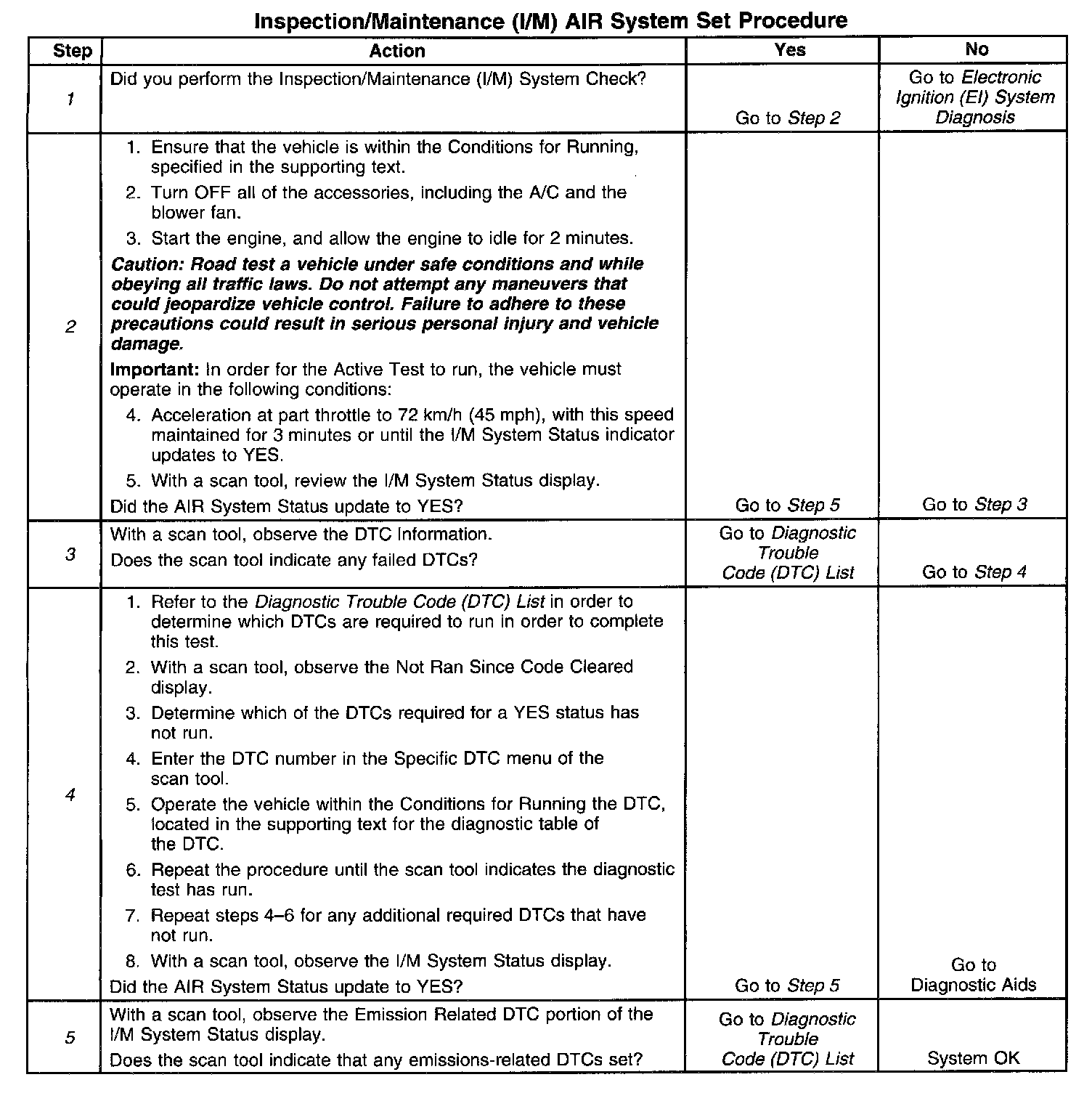 1. Before you perform this test, you must perform the I/M System Check. Failure to do so may result in difficulty updating the status to YES. Inspection/Maintenance (I/M) System Check