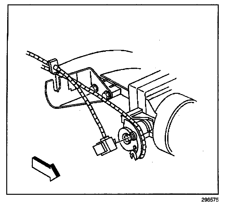 12. Route the throttle body end of the cruise control cable up to the throttle body.