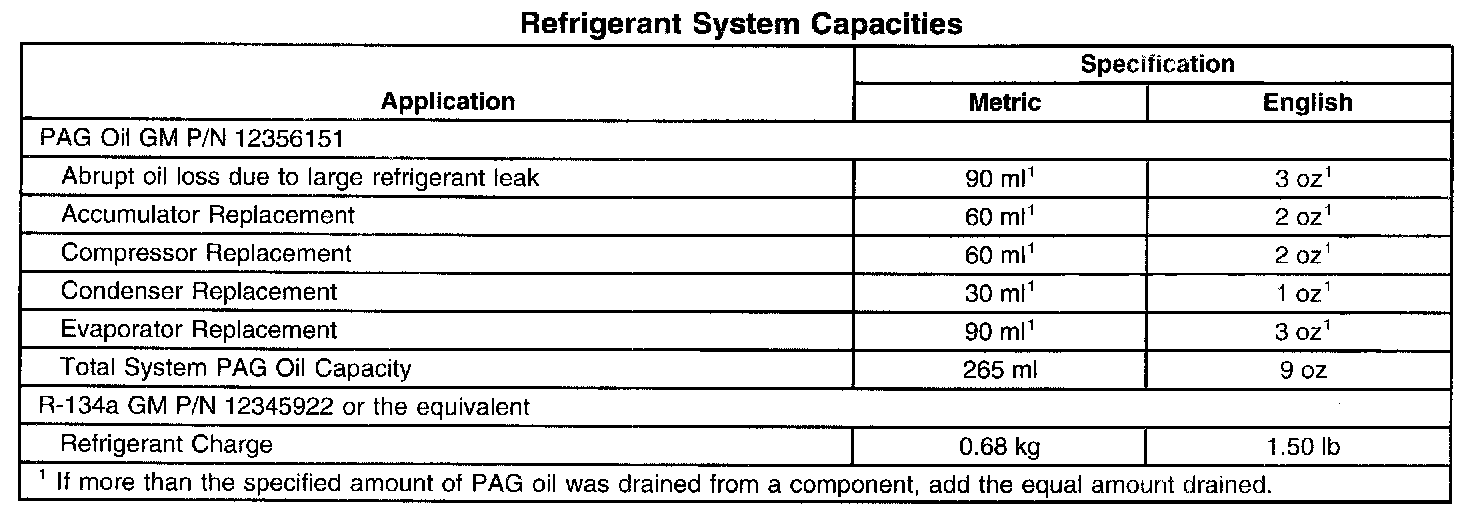 Refrigerant System Capacities: