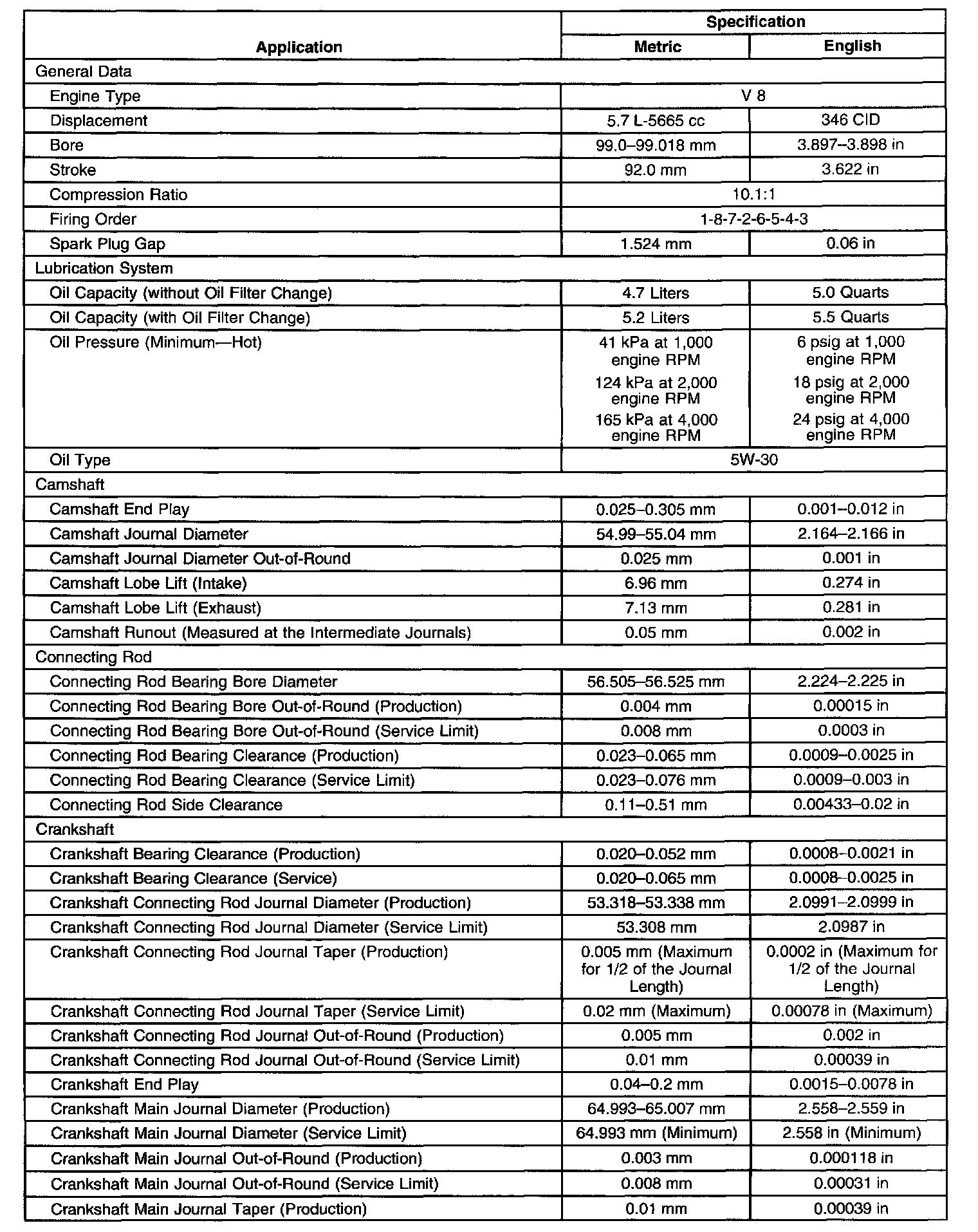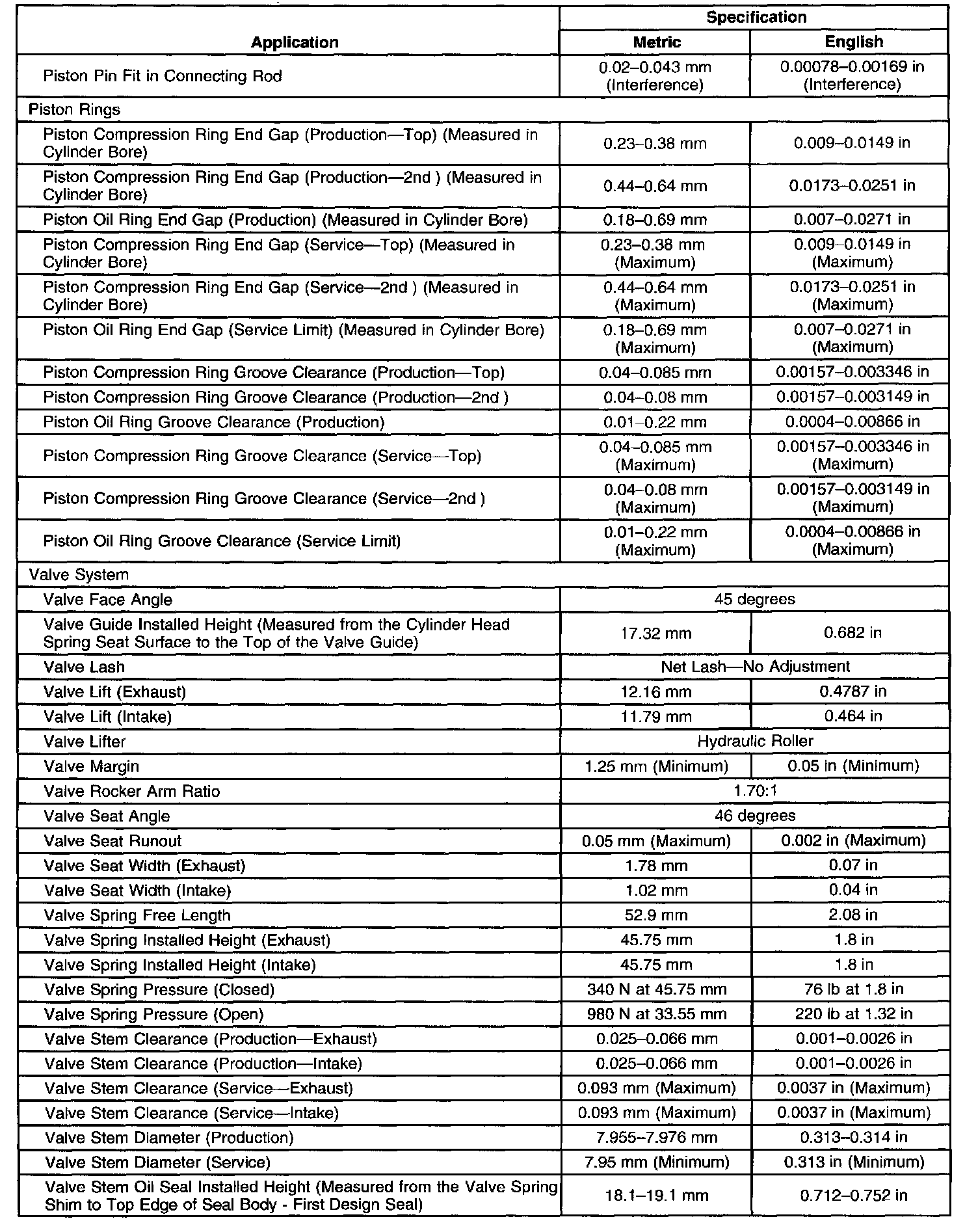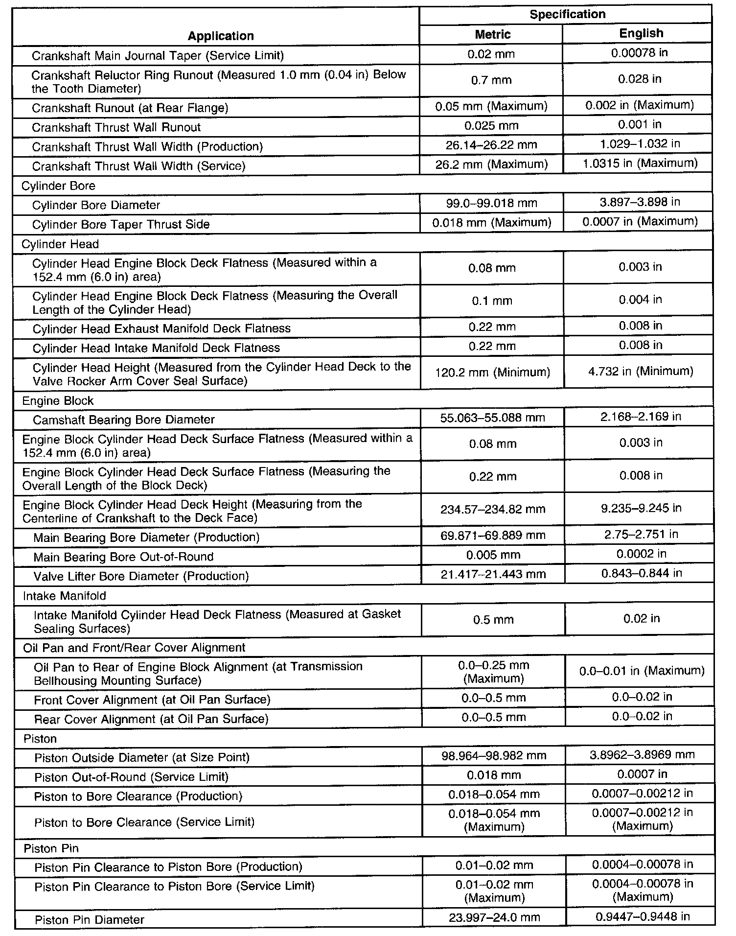 Engine Mechanical Specifications