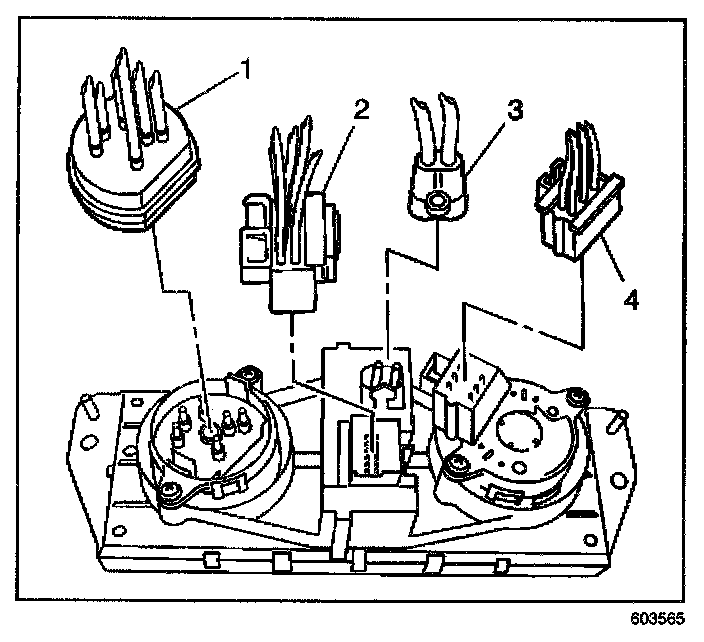 6. Disconnect the blower motor switch electrical connector (4) from the control assembly.