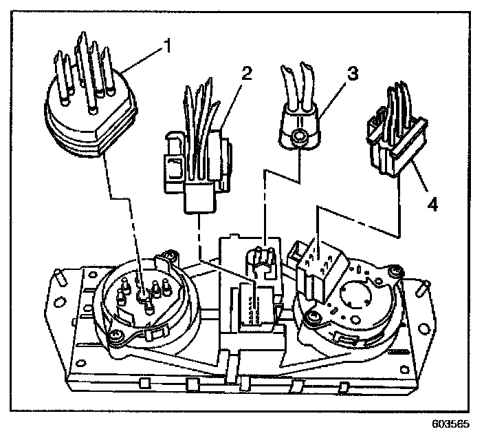 3. connect the blower motor switch electrical connector (4) to the control assembly.