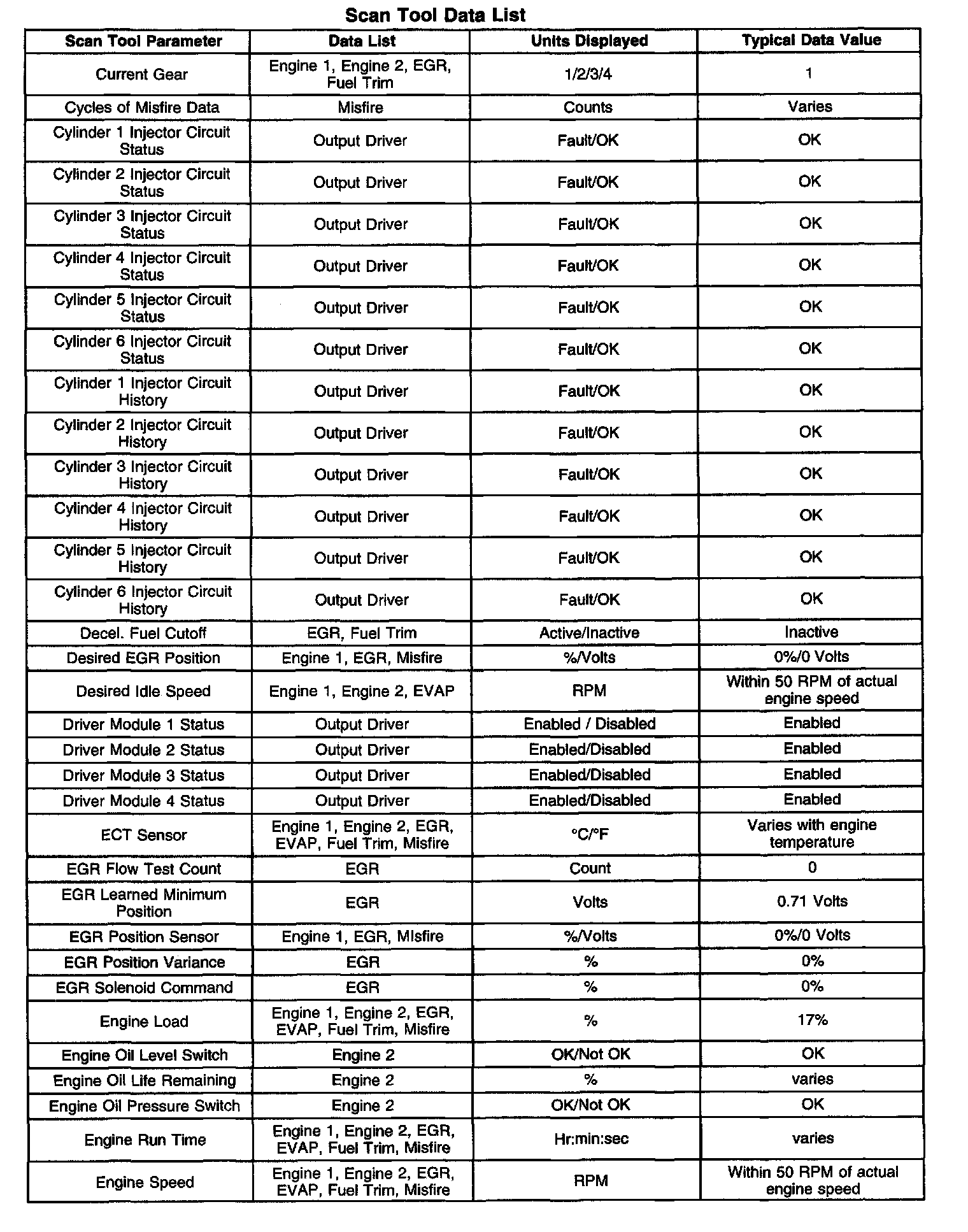 ^ EGR Data-Contains information specific to the Exhaust Gas Recirculation (EGR) system. This list displays parameters required to verify proper EGR system operation.
