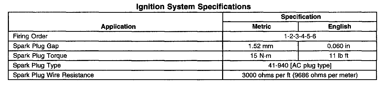Ignition System Specifications: