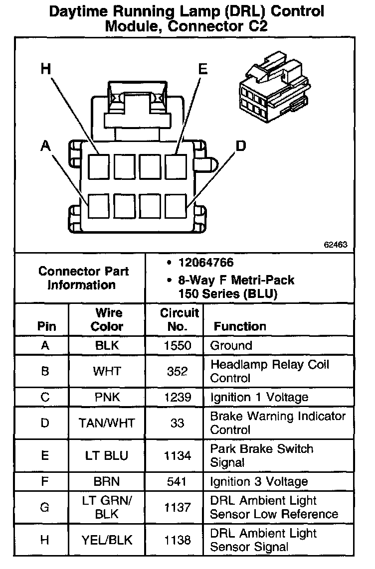 Daytime Running Lamp (DRL) Control Module, Connector C2: