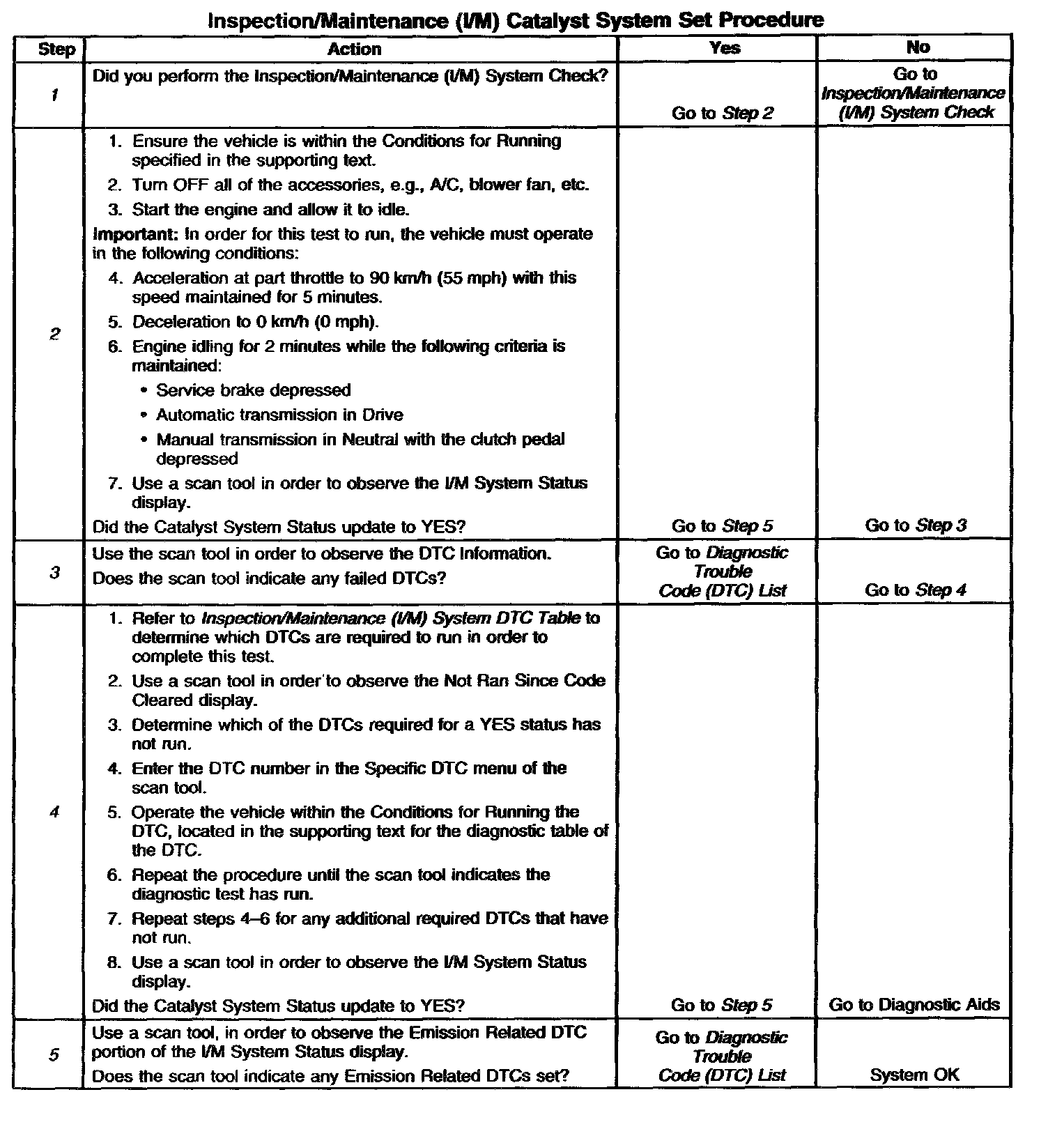 I/M Catalyst System Set Procedure
