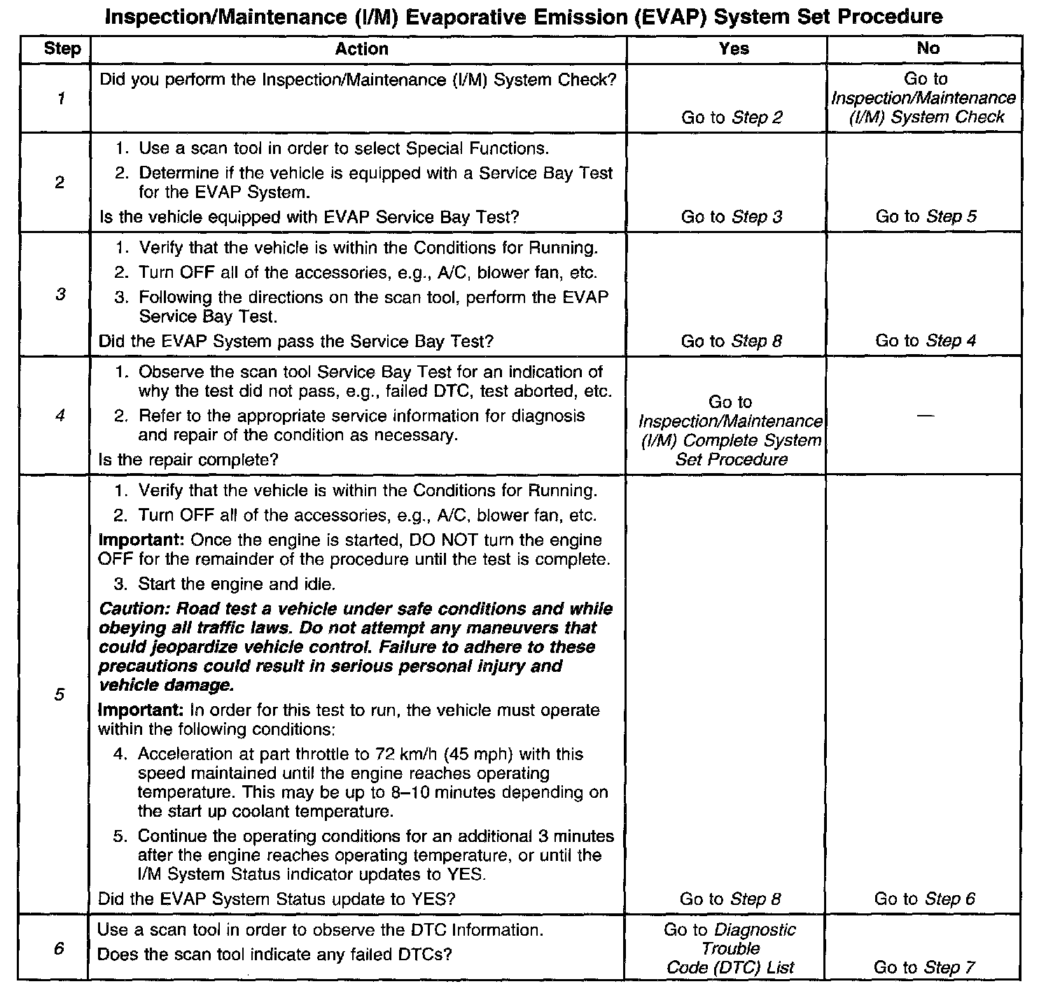 1. Perform the I/M System Check before performing this test. Failure to do so may result in difficulty updating the status to YES. Inspection/Maintenance (I/M) System Check