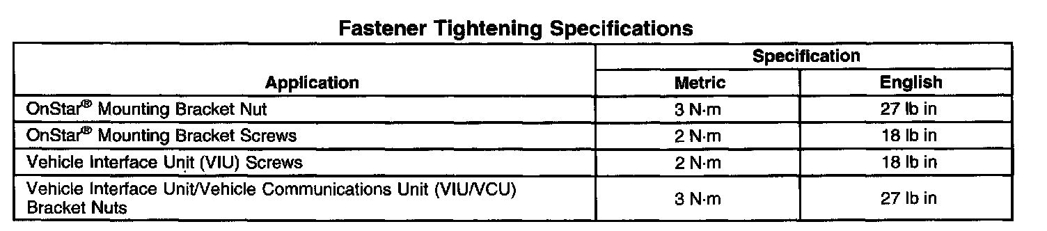 Fastener Tightening Specifications: