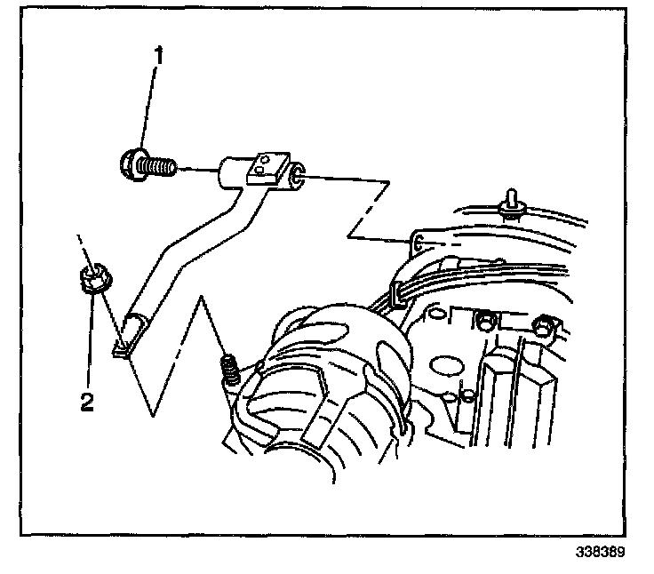 4.2. Tighten the generator rear brace nut (2) to 50 N.m (37 lb ft).