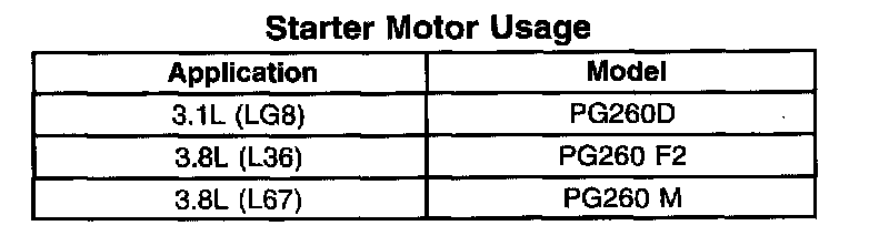 Starter Motor: Specifications