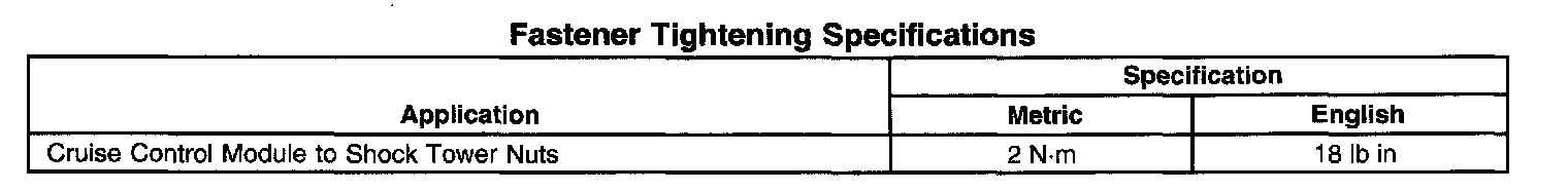 Fastener Tightening Specifications: