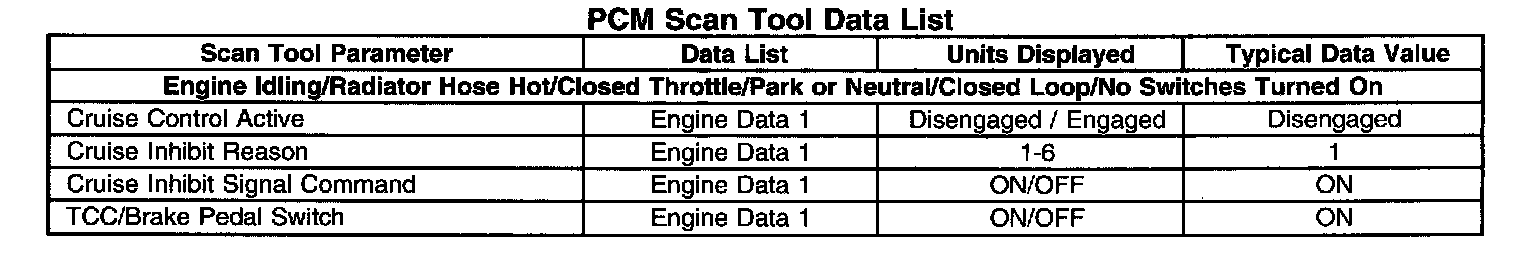 Scan Tool Data List - Powertrain Control Module (PCM)