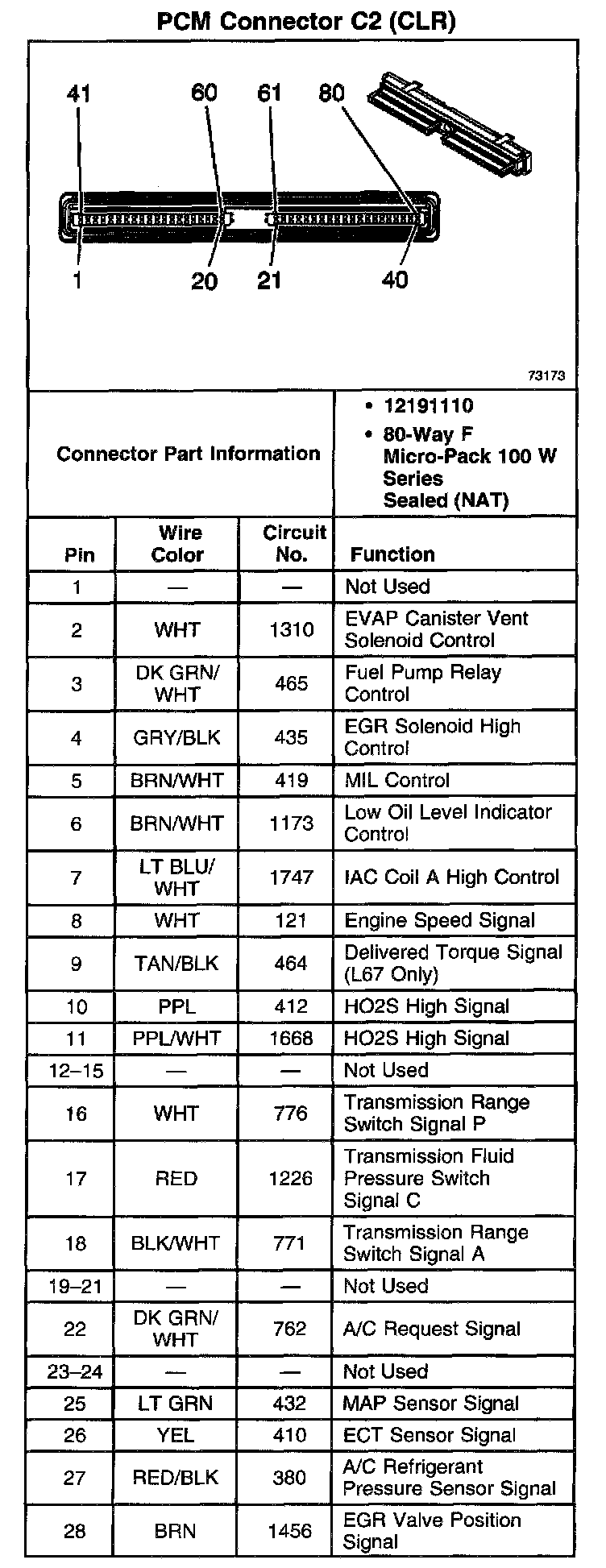 PCM Connector C2 (CLR) (Part 2 Of 2):