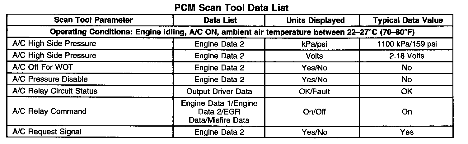 Scan Tool Data List - Powertrain Control Module (PCM)